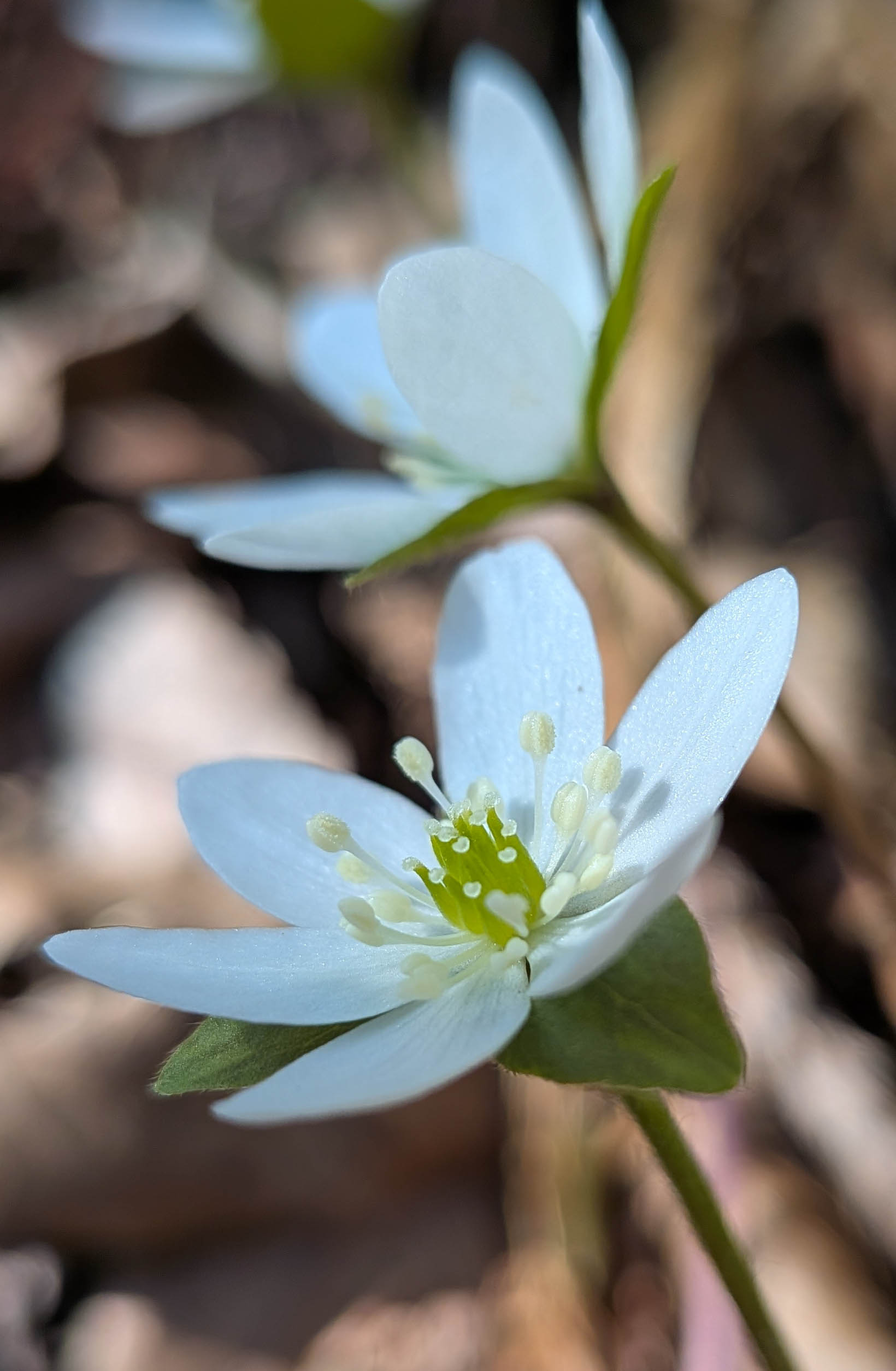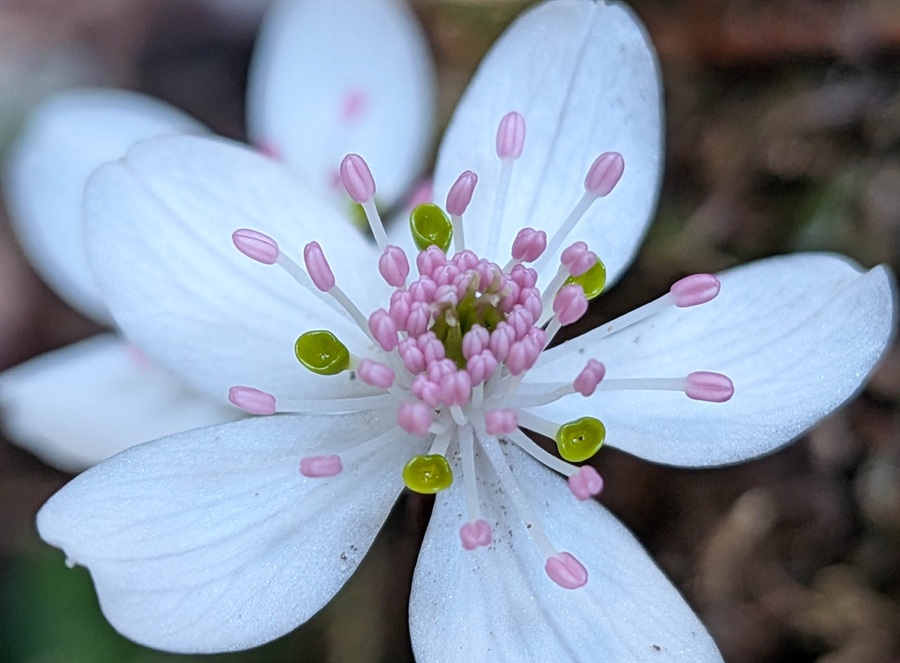 ユキワリイチゲは2-3月、高地では4月と山中に咲いているがだいたい、登山道沿いの地質ではポツポツと点在するだけで群生することは珍しい、関西でも滋賀県に特別保護区として素晴らしい自生地があったり、京都や兵庫県でも保護されていたり栽培されているユキワリイチゲはあって、日当たりがいいので開花して気温も高ければヒマワリのように花びらを広げるがおおかたは蕾に近い感じだ、葉も小さくてあまり元気はないが「ここの自生地は大きく、太くて元気だった」とても群生していて葉も立派で色合いも綺麗だった。純粋な自生地なのだろう。
